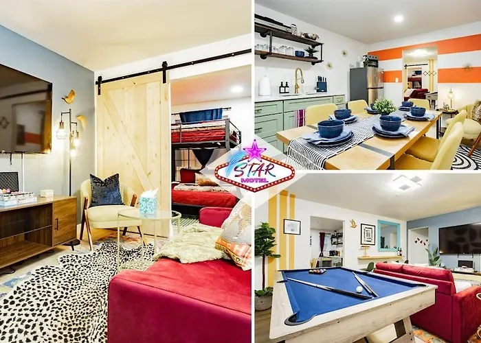 Located merely 7 minutes' walk from the Sweethearts Wedding Chapel & Bridal Boutique|Sweethearts Wedding Chapel, the 1-bedroom Star Motel Unit 5- New Downtown Haven Boutique Las Vegas Oasis Home offers quick access to various city attractions in the vicinity. Providing guests with Wi-Fi and complimentary private parking, the accommodation is within reach of Stratosphere Thrill Rides.